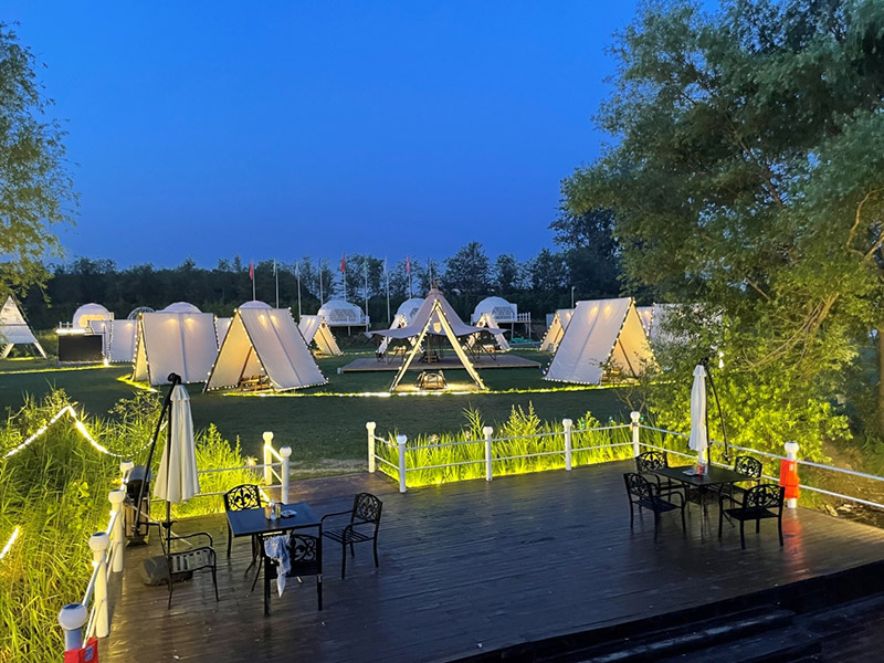此區塊位于規劃地塊的東北角濱水區塊,該區塊項目設計意在配合度假酒店,加載精品化的休閑度假項目,打造精品度假體驗。其主要內設項目包括垂釣俱樂部、房車營地、篝火廣場、精品帳篷酒店、帳篷餐廳和露天燒烤園等等
